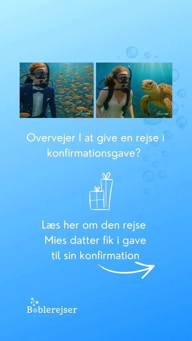 Vi er et dansk baseret rejsebureau, der skræddersyr familieferier med aktiviteter som dykning og snorkling – til jer, der vil opleve verden under havets overflade sammen.